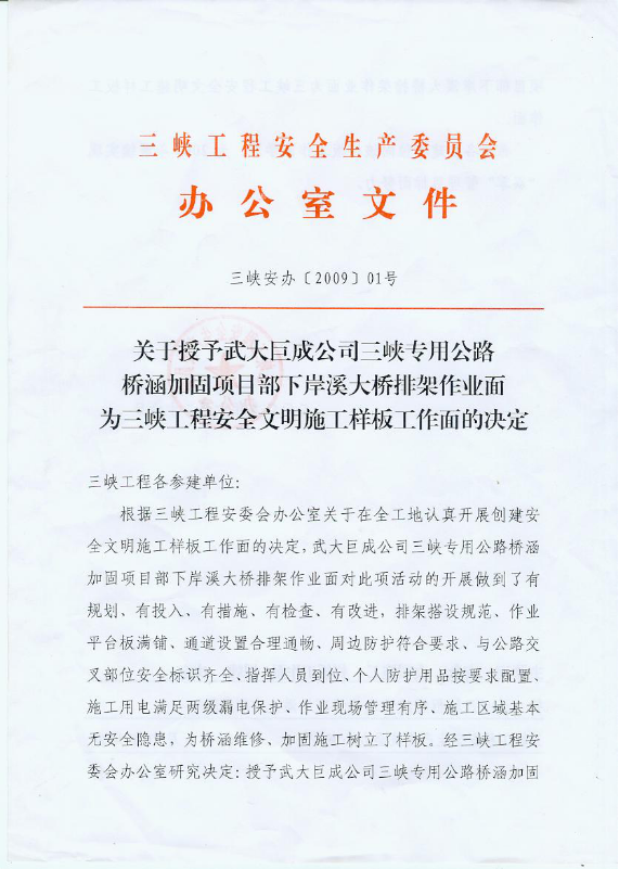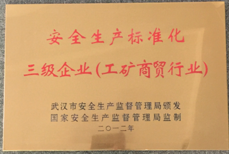 2012年武漢市安全生產(chǎn)監(jiān)督管理局“安全生產(chǎn)標(biāo)準(zhǔn)三級(jí)企業(yè)”