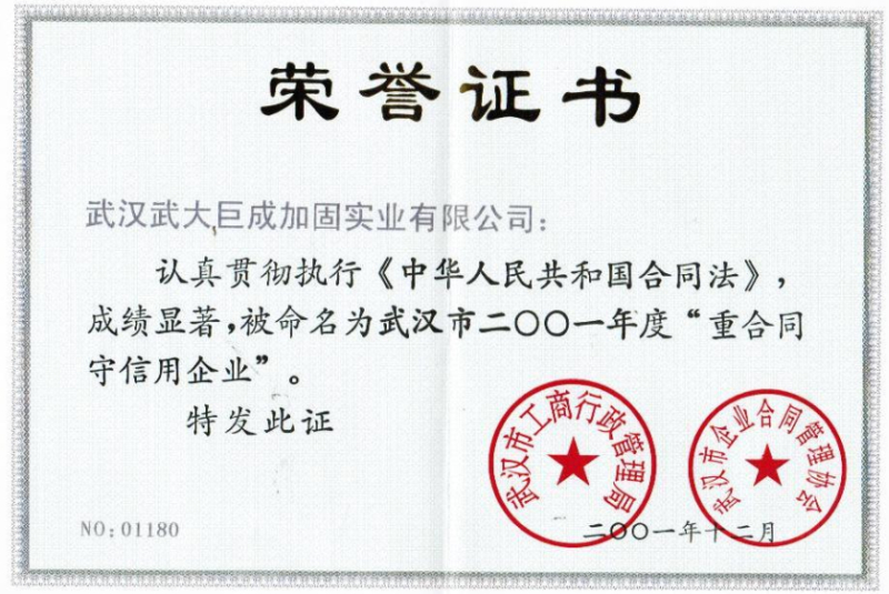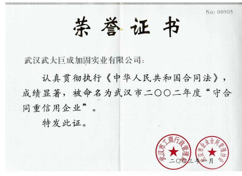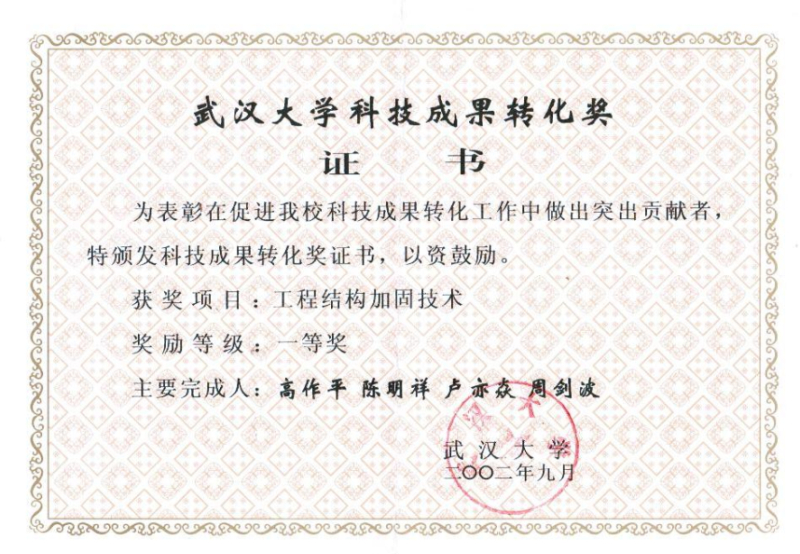 2002年度武漢大學(xué)“工程結(jié)構(gòu)加固技術(shù)一等獎(jiǎng)”