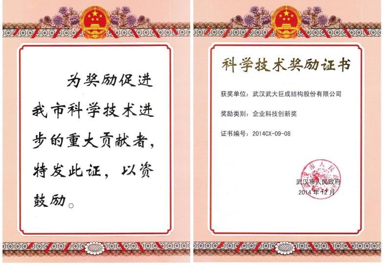 武漢市人民政府2014年企業(yè)科技創(chuàng)新獎(jiǎng)