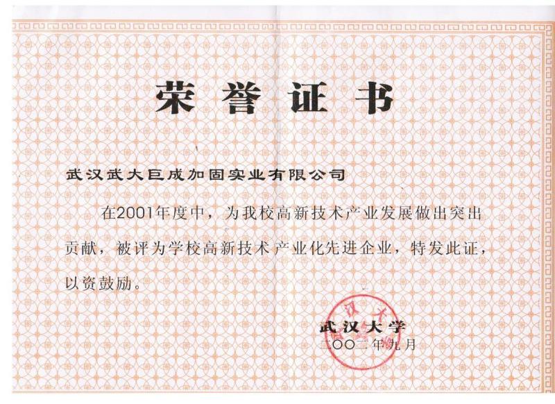 2001年度武漢大學(xué)高新技術(shù)產(chǎn)業(yè)化先進(jìn)企業(yè)
