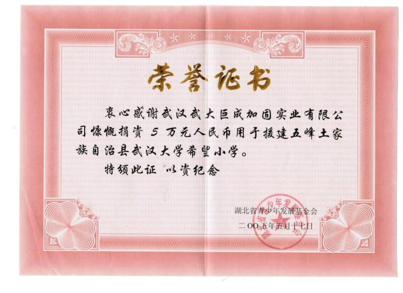 2005年援建五峰土家族自治縣武漢大學(xué)希望小學(xué)