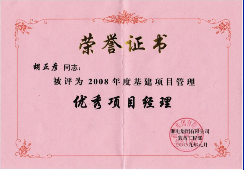 2008年湘電集團(tuán)“優(yōu)秀項(xiàng)目經(jīng)理”