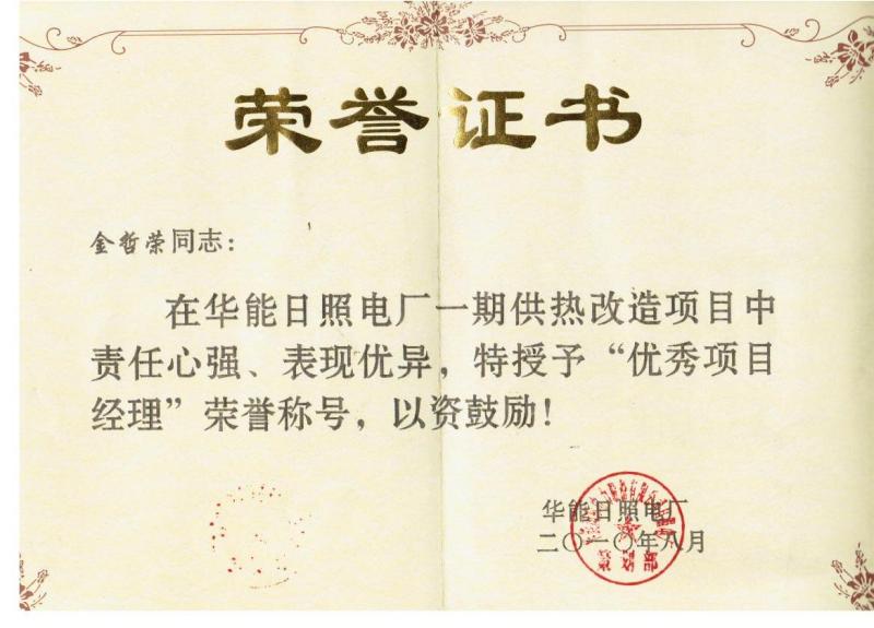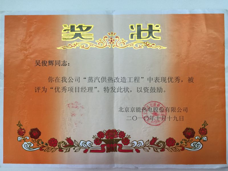2010年北京京能熱電“優(yōu)秀項(xiàng)目經(jīng)理”