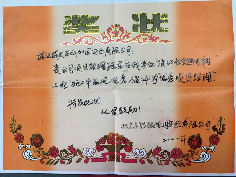 2011年北京京能熱電“優(yōu)秀項(xiàng)目經(jīng)理”