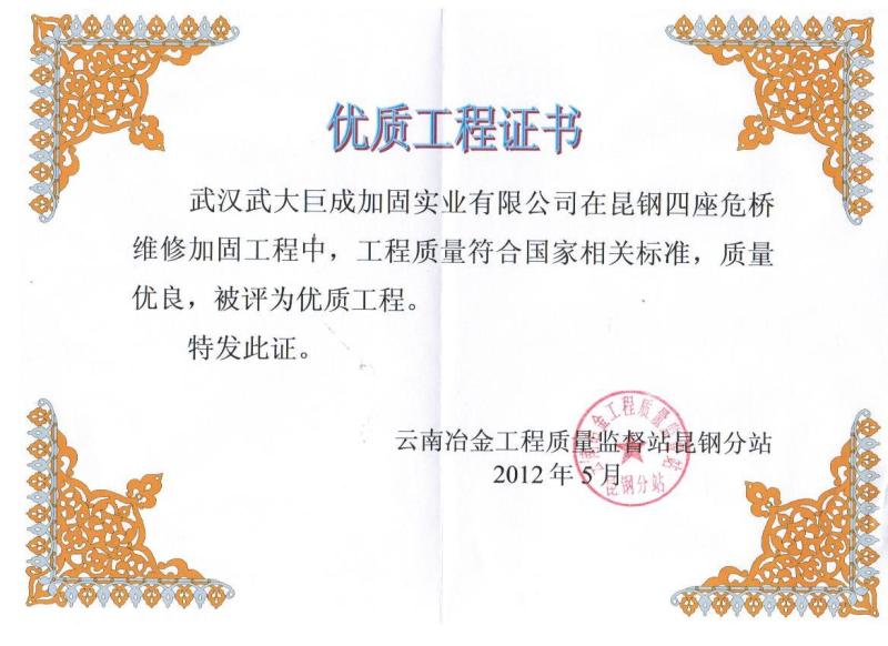 2012年云南冶金工程質(zhì)量監(jiān)督站“優(yōu)質(zhì)工程”