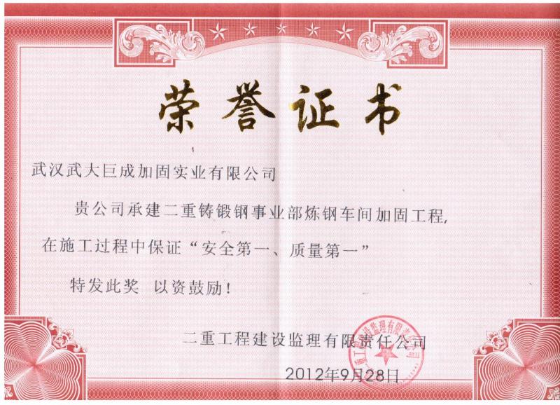 2012年二重建設(shè)監(jiān)理有限公司“安全第一、質(zhì)量第一”