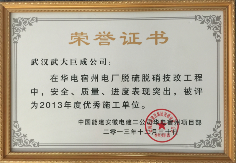 2013年中國(guó)能建“優(yōu)秀施工單位”