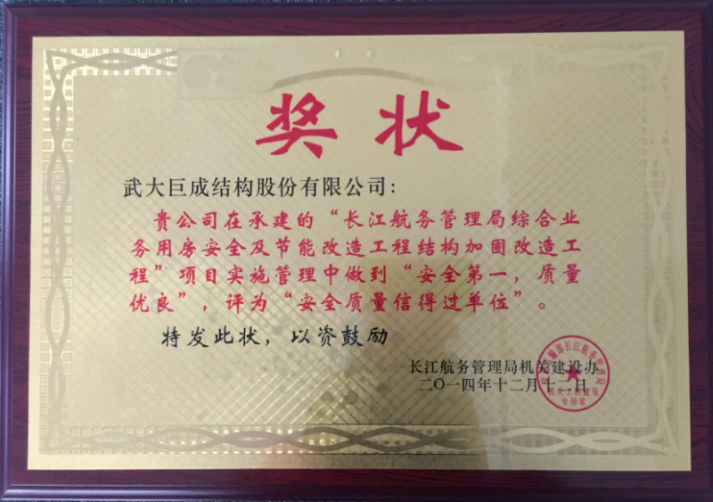 2014年長(zhǎng)江航務(wù)管理局“安全質(zhì)量信得過(guò)單位”