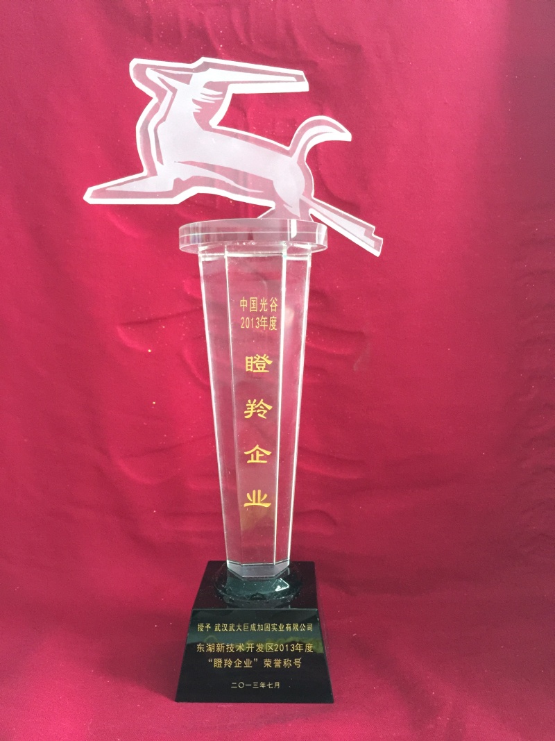 2013年武漢市東湖新技術(shù)開(kāi)發(fā)區(qū)授予巨成“瞪羚企業(yè)”