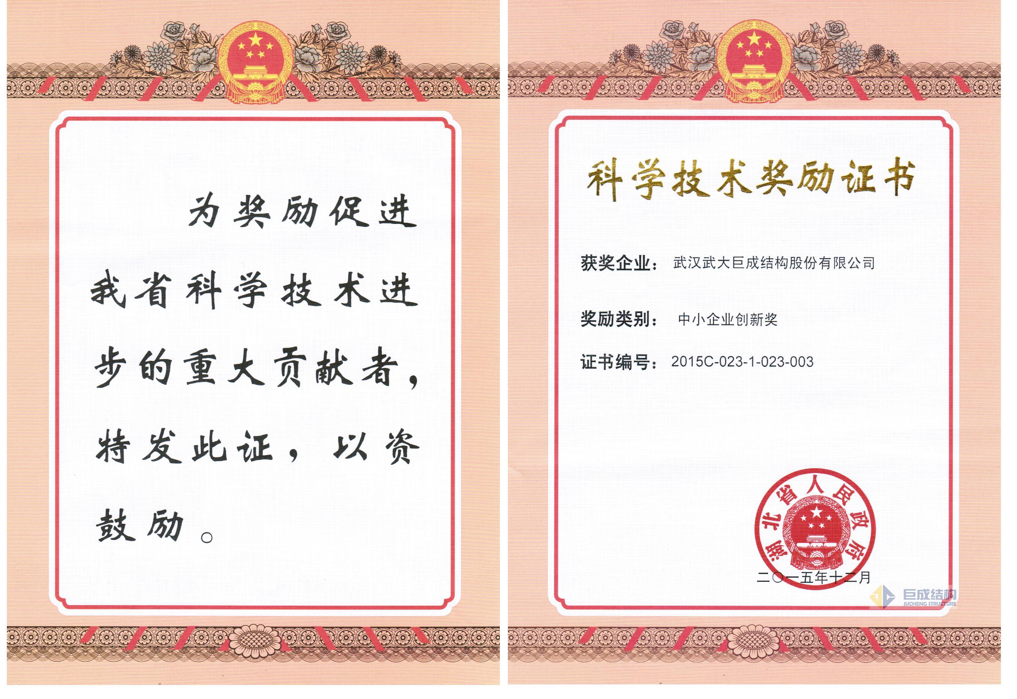 湖北省人民政府2015年中小企業(yè)創(chuàng)新獎(jiǎng)