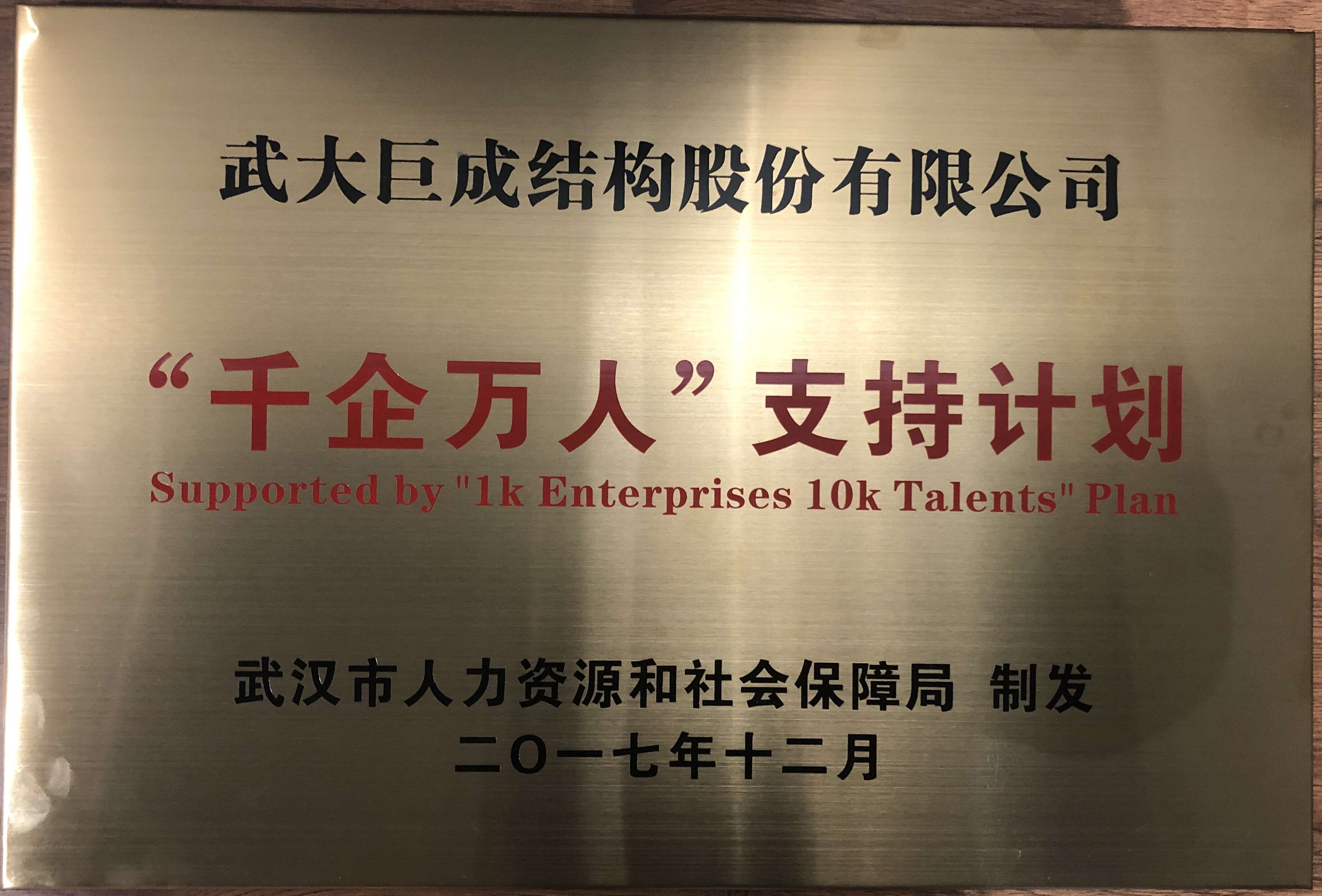 2018年武漢市人力資源和社會(huì)保障局授予“千企萬(wàn)人”支持計(jì)劃