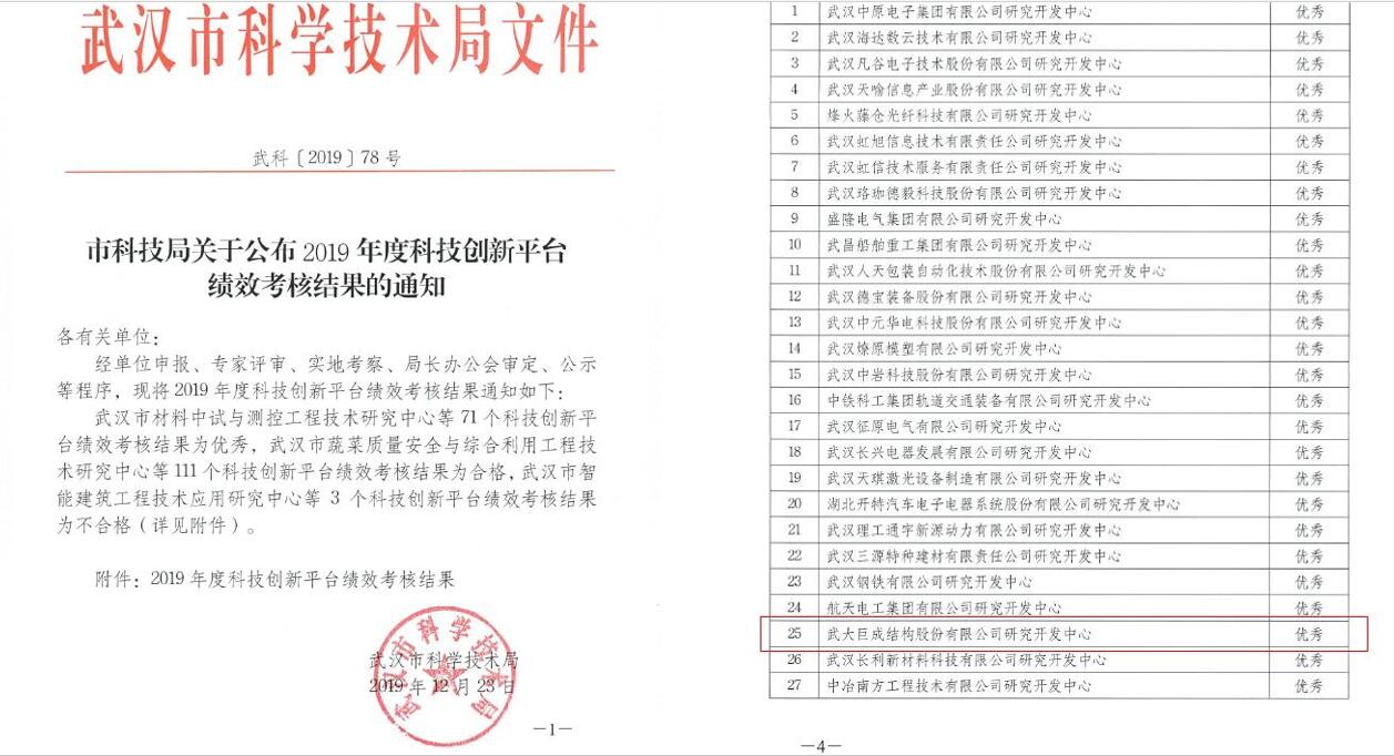2019年度科技創(chuàng)新平臺(tái)績(jī)效考核結(jié)果——優(yōu)秀