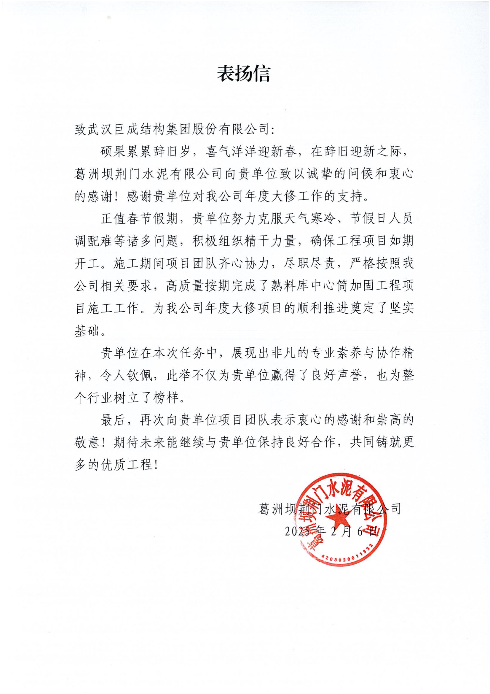 2025年葛洲壩荊門(mén)水泥有限公司 表?yè)P(yáng)信
