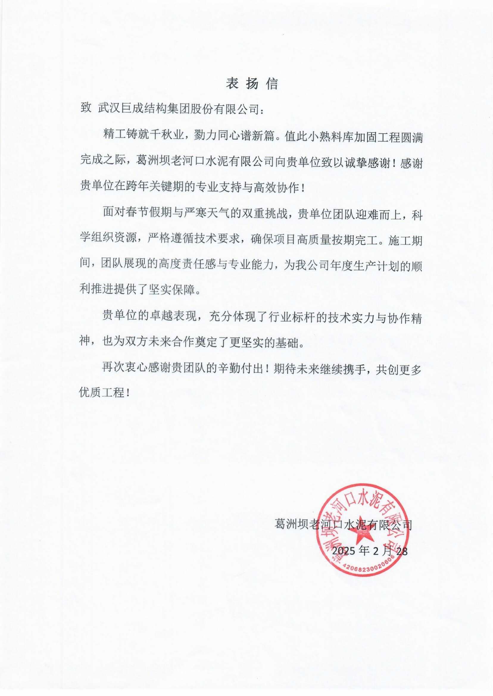 2025年葛洲壩老河口水泥有限公司 表?yè)P(yáng)信