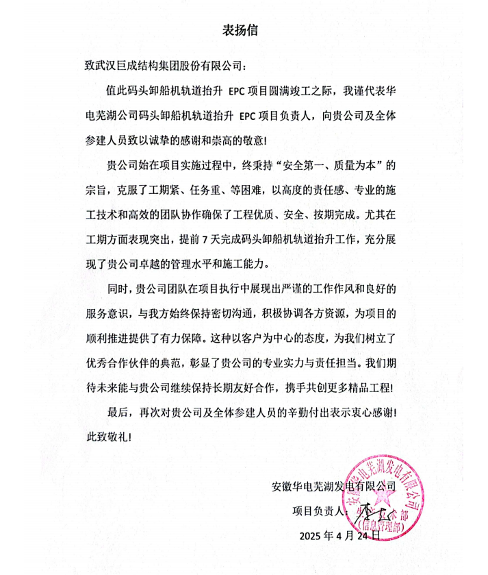 2025年安徽華電蕪湖發(fā)電有限公司 表?yè)P(yáng)信