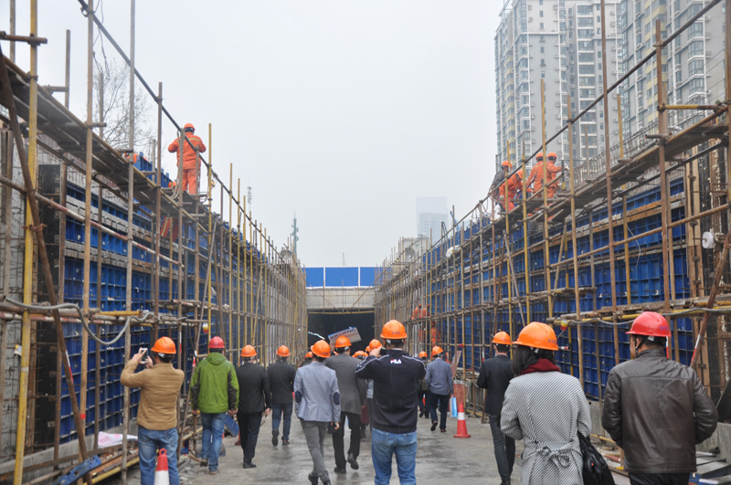 參會人員參觀三陽路清水混凝土現(xiàn)場