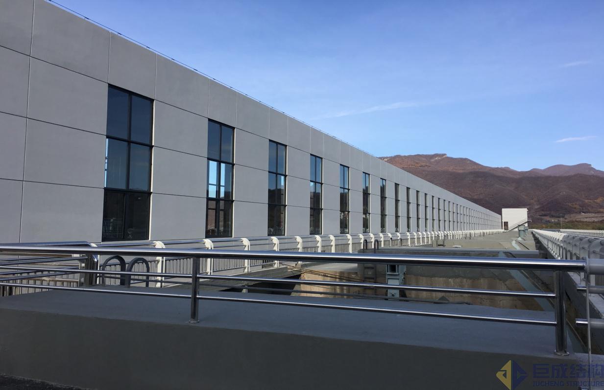 (觀音閣水庫)庫區(qū)自然環(huán)境優(yōu)美藍(lán)天碧水,采用清水混凝土的工業(yè)建筑避免了與環(huán)境的沖突。
