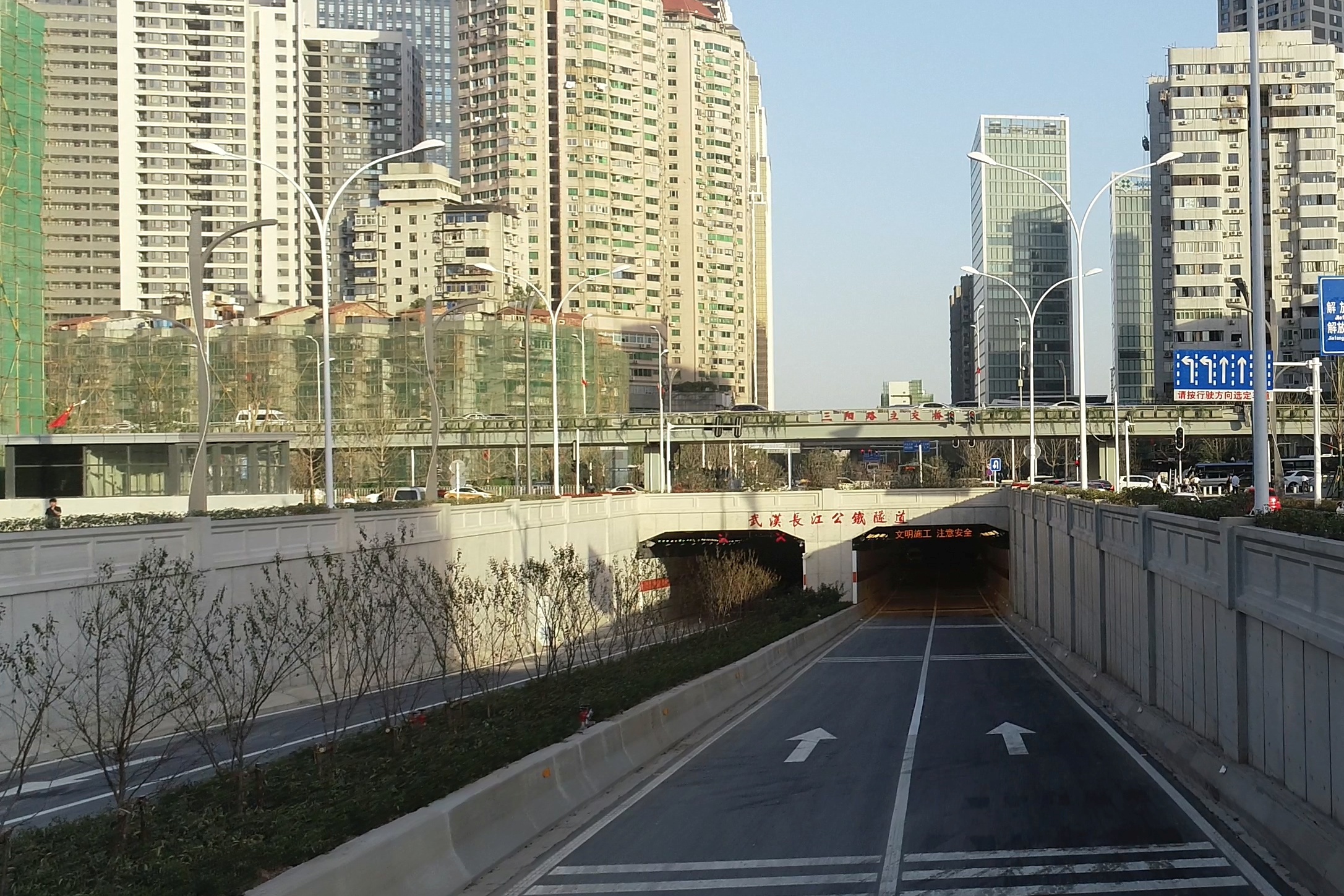 武漢三陽路過江隧道匝道口側(cè)墻后澆清水混凝土面層裝飾工程