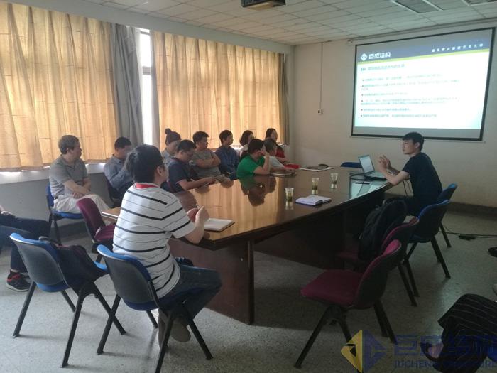 六場(chǎng)科技交流分別由江蘇省江都水利工程管理處副主任周燦華、江蘇省水利勘測(cè)設(shè)計(jì)研究院有限公司副總經(jīng)理陶瑋、南京市政設(shè)計(jì)研究院有限責(zé)任公司總經(jīng)理助理黃曉東、南京金凌石化工程設(shè)計(jì)院有限公司總工黃月年、江蘇省化工設(shè)計(jì)院有限公司主任工程師鄭德勝,以及南京揚(yáng)子石油化工設(shè)計(jì)工程有限責(zé)任公司主任工程師潘健主持召開,每場(chǎng)均20余人參會(huì),包括各單位的規(guī)劃、建筑、結(jié)構(gòu)相關(guān)專業(yè)人員。主講人高老師和湯博士從建筑物改造發(fā)展歷史與現(xiàn)況、清水混凝土技術(shù)、巨成涂料和涂裝體系、建筑物加固特種技術(shù)(包括糾偏與平移技術(shù)、鋼滑道頂升增層技術(shù)、擴(kuò)孔自鎖錨固技術(shù)、粘結(jié)型鋼加固技術(shù))、建筑物改造實(shí)際案例,以及檢測(cè)鑒定與設(shè)計(jì)咨詢等方面,詳細(xì)地介紹了我公司在建筑物改造方面取得的豐碩成果。