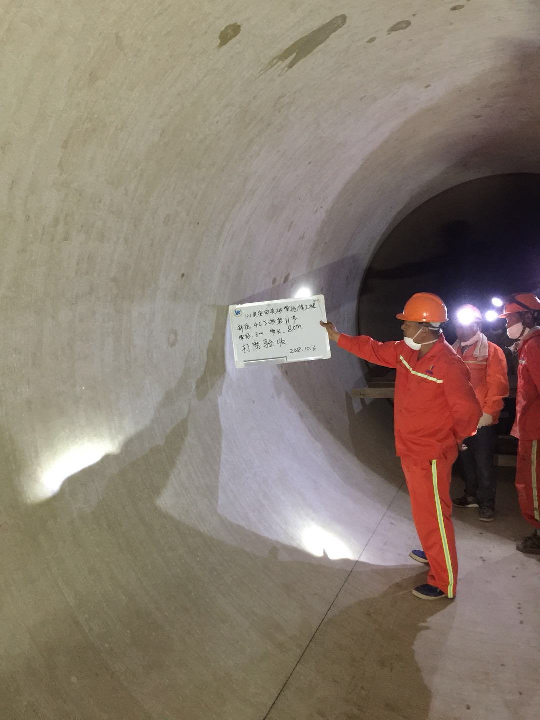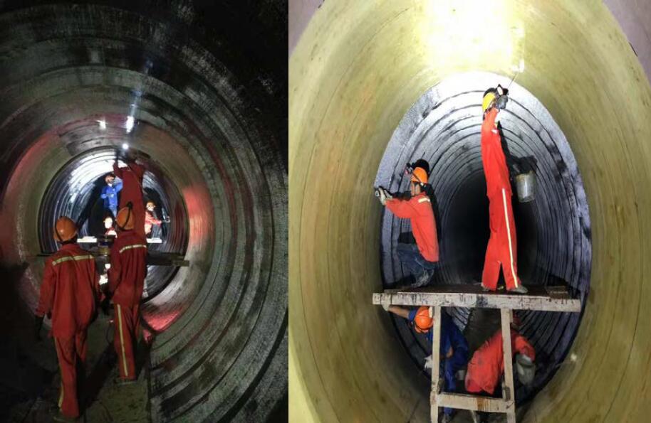 武大巨成于10月1日開始著手準(zhǔn)備,10月4日獲得正式工作面,高峰時期42人同時下管作業(yè),完成2900㎡碳布粘貼,共15節(jié)玻璃鋼夾砂管加固,最終平安順利、高質(zhì)保量地完成了搶修任務(wù),再次解決了深圳市原關(guān)外近300萬人的吃水保障問題,同時解除了東江水源工程2018年度停水檢修工作面臨推遲的警報!