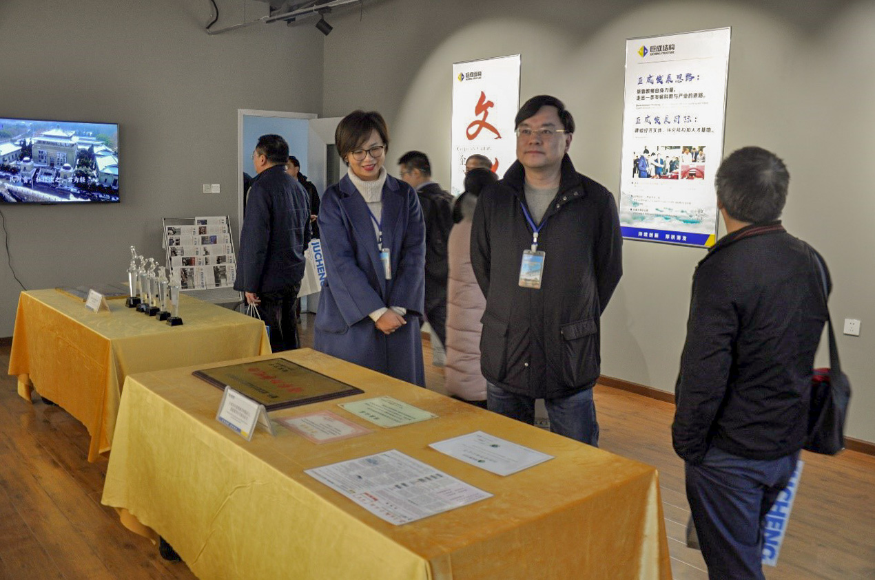 參會(huì)嘉賓在武大巨成董事長兼總經(jīng)理高作平、董事陳明祥、盧亦焱,董事、副總經(jīng)理萬雄衛(wèi)、常務(wù)副總經(jīng)理閔啟武、副總經(jīng)理張黎明的陪同下,參觀了公司的五個(gè)展廳,通過展廳和宣傳片的展示和產(chǎn)品介紹,嘉賓們對(duì)巨成的企業(yè)發(fā)展歷程、文化與綜合實(shí)力、科技發(fā)展有了更新的認(rèn)識(shí)。
