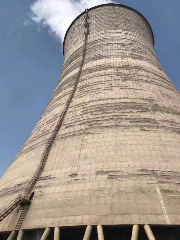 山東天源熱電有限公司三電廠(chǎng)2#冷卻塔,隸屬世界五百?gòu)?qiáng)印尼“金光集團(tuán)”。項(xiàng)目位于山東淄博,2011年投入使用,淋水面積5500㎡,總高度為115.00m。加固改造前因結(jié)構(gòu)嚴(yán)重破損,被當(dāng)?shù)亟ㄔO(shè)管理部門(mén)責(zé)令立即處理??紤]到重建投資高,程序復(fù)雜,業(yè)主決定加固改造。為高質(zhì)量完成改造任務(wù),業(yè)主面向業(yè)內(nèi)的全國(guó)優(yōu)秀企業(yè)進(jìn)行招標(biāo)。巨成憑借豐富的經(jīng)驗(yàn)業(yè)績(jī)、突出的技術(shù)方案、嚴(yán)密的施工組織、科學(xué)的安全保障拔得頭籌。