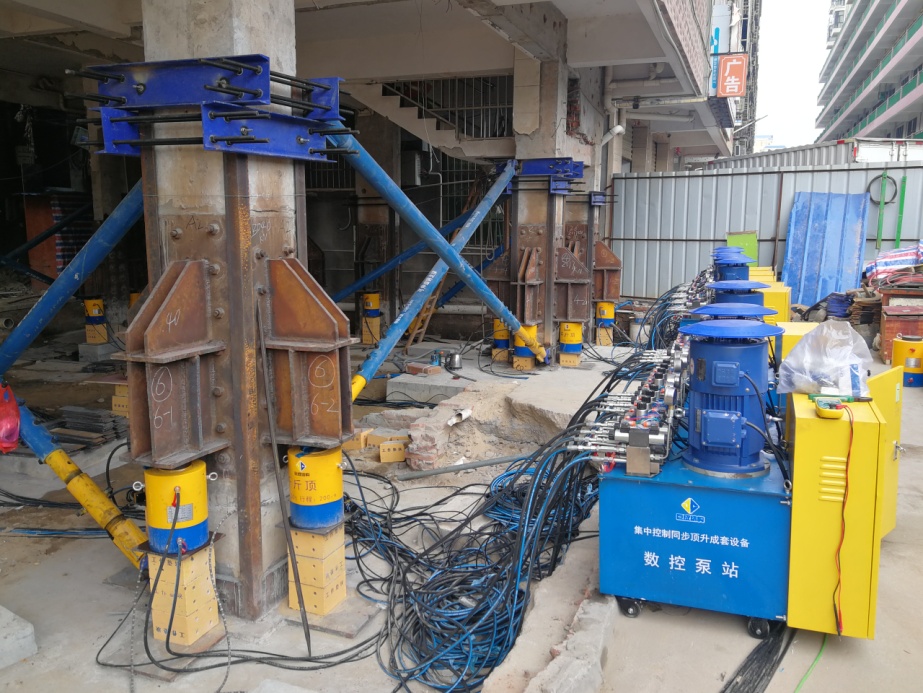 巨成結(jié)構(gòu)是中國標準化協(xié)會標準《鋼滑道頂升改造老舊小區(qū)技術(shù)規(guī)程》和湖北省地方標準《鋼滑道頂升增層技術(shù)規(guī)程》的主編單位。本次糾偏采用的是巨成群控同步頂升成套設(shè)備。巨成結(jié)構(gòu)在2021年12月8日發(fā)布了集中控制同步頂升成套設(shè)備,采用了德國西門子的5種芯片,讓頂升、糾偏、平移、旋轉(zhuǎn),實現(xiàn)了數(shù)字化信息化。目前已升級為群控同步頂升成套設(shè)備,可同時控制30000個千斤頂,誤差在0.3mm以內(nèi)。