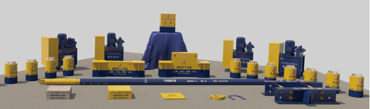 巨成公司自主研發(fā)了基于鋼滑道技術(shù)的群控同步頂升系統(tǒng)及成套設(shè)備,可應(yīng)用于建筑物的頂升、糾偏、平移及旋轉(zhuǎn)等工程。該成套設(shè)備包括同步頂升控制主站、數(shù)控泵站、液壓千斤頂、配電柜、操作站等主要設(shè)備,還包括鋼滑道、可伸縮鋼支撐、上牛腿、下牛腿、高精高強(qiáng)混凝土墊塊、千斤頂受力環(huán)等配套設(shè)備,如圖1。