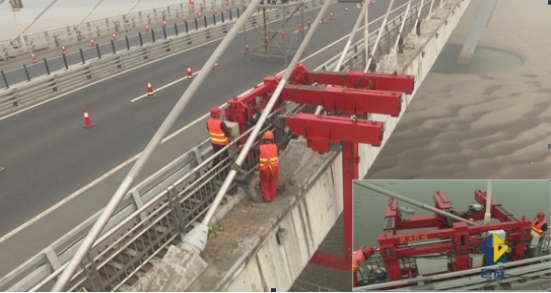 武漢長(zhǎng)江二橋在武漢市中心,為當(dāng)時(shí)武漢市中心連接漢口和武昌的重要跨江大橋,每天車(chē)輛交通流量大。在運(yùn)行維護(hù)期間對(duì)該橋梁進(jìn)行全面的結(jié)構(gòu)檢測(cè),因此采用巨成不封道橋梁檢修架車(chē),在安裝時(shí)臨時(shí)封一個(gè)車(chē)行道,安裝完畢后恢復(fù)臨時(shí)封道,該橋檢車(chē)可自動(dòng)避讓燈桿,檢測(cè)全程不影響交通。
