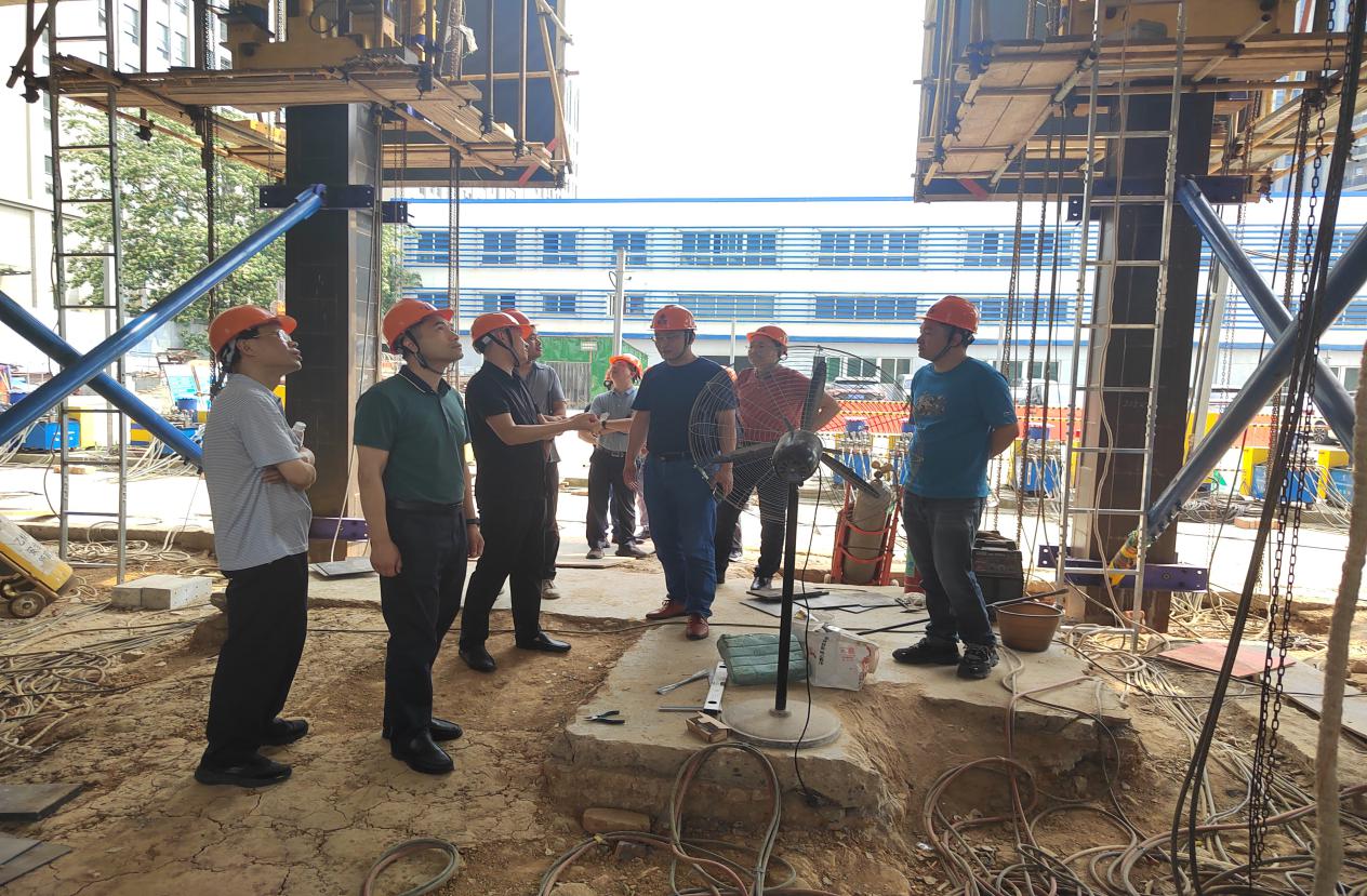 中輕武設(shè)李總一行來到巨成群控同步頂升工程試驗(yàn)項(xiàng)目現(xiàn)場,副總經(jīng)理廖杰洪介紹了頂升試驗(yàn)內(nèi)容和目的,并對群控同步頂升大型數(shù)控設(shè)備以及頂升原理等做了詳細(xì)講解。雙方在現(xiàn)場展開了熱烈討論,并就試驗(yàn)過程中的相關(guān)技術(shù)要點(diǎn)進(jìn)行了深入交流。