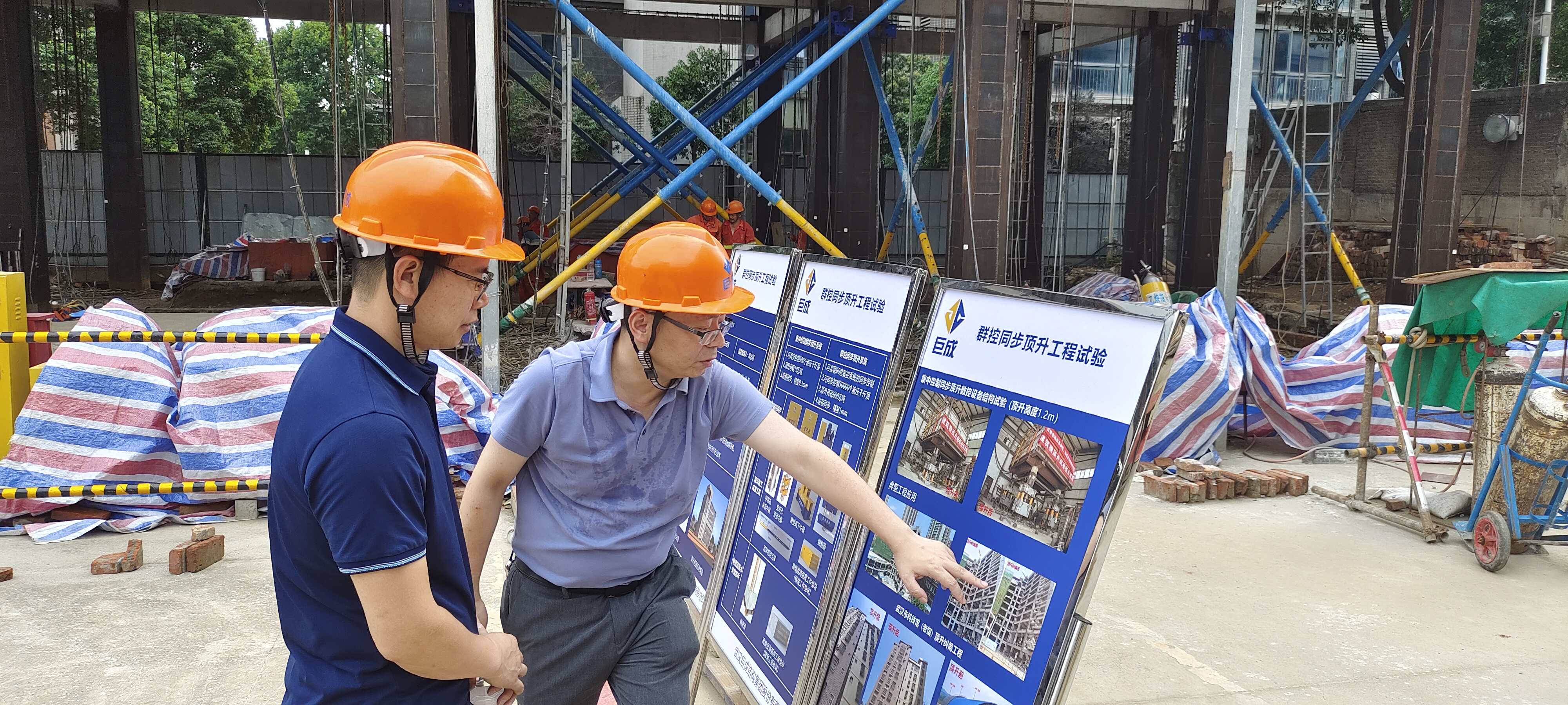 在巨成群控同步頂升工程試驗項目現(xiàn)場,巨成副總經(jīng)理張暢介紹了頂升試驗的背景和目的,并對頂升原理及群控同步頂升大型數(shù)控設(shè)備做了詳細講解。雙方對鋼滑道頂升技術(shù)應(yīng)用場景展開了熱烈討論,并就試驗過程中的相關(guān)技術(shù)要點、施工流程以及應(yīng)用進行了深入交流。