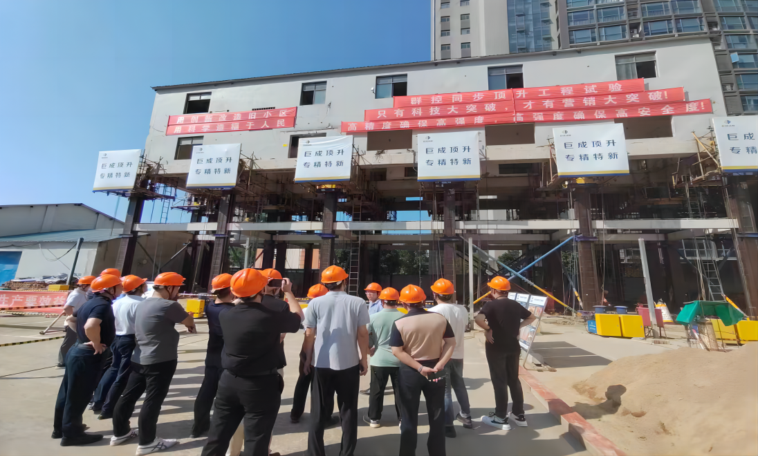 在巨成群控同步頂升工程試驗項目現(xiàn)場,副總經(jīng)理張暢詳細介紹了頂升工程試驗。專家就試驗細節(jié)進行了詳細的了解與討論。