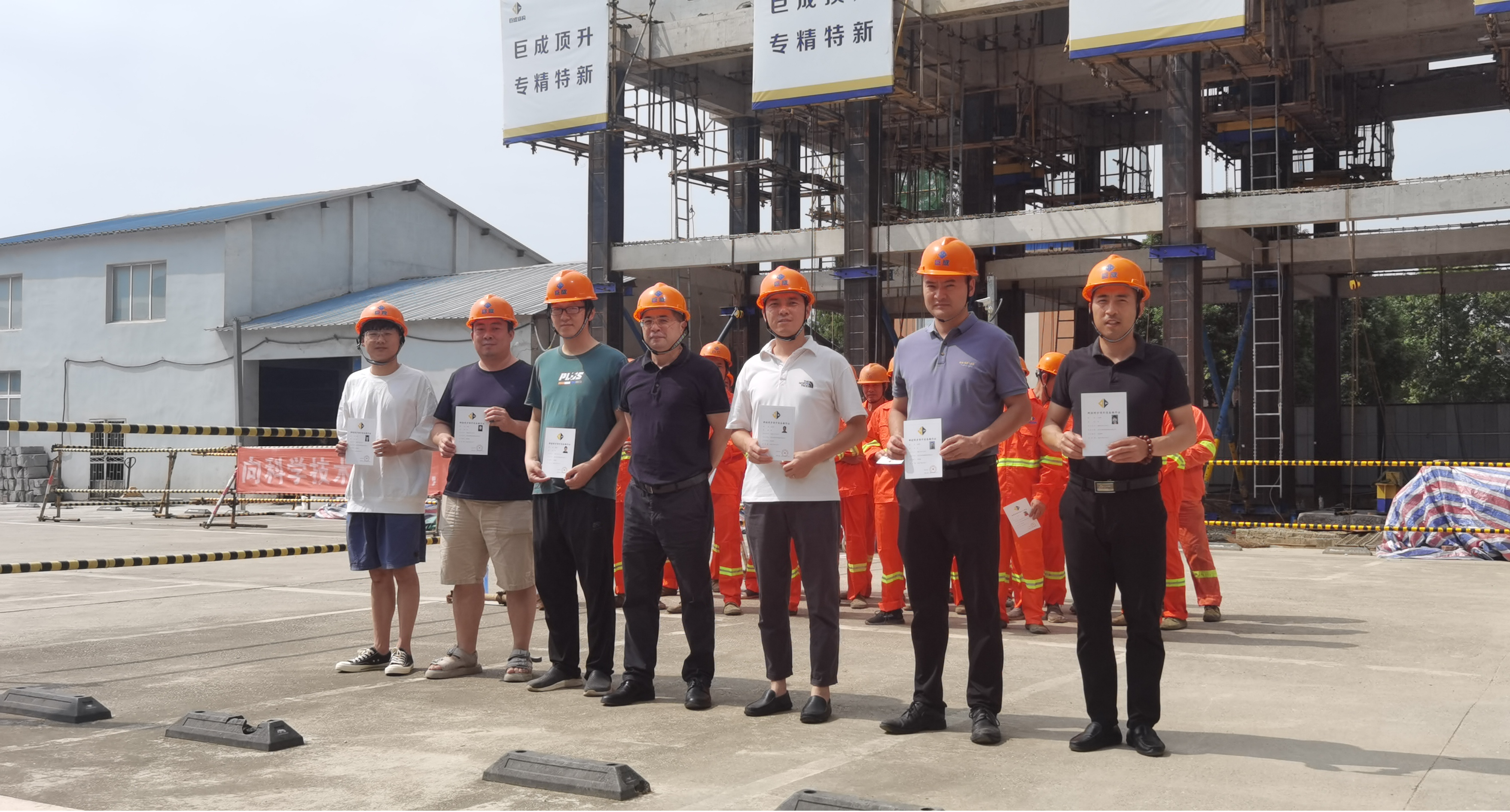 巨成的群控同步頂升工程試驗(yàn)取得圓滿成功,在該項(xiàng)目實(shí)施過(guò)程中,又涌現(xiàn)了一批優(yōu)秀工人。他們施工經(jīng)驗(yàn)豐富,善于學(xué)習(xí)總結(jié),牢牢掌握了工藝流程,將在以后同類(lèi)項(xiàng)目施工中大顯身手。8月10日,公司特為這批優(yōu)秀的施工人員頒發(fā)了“鋼滑道頂升施工上崗證”,同時(shí)為我們的設(shè)備操作人員頒發(fā)了“群控同步頂升設(shè)備操作證”。