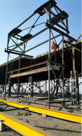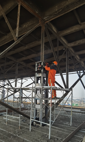 目前,項(xiàng)目部約有200人正緊鑼密鼓地開展鋼天窗架頂降的相關(guān)施工準(zhǔn)備工作,如鋼滑道安裝、天窗架構(gòu)件加固、縱橫向支撐安裝、設(shè)備安裝調(diào)試等。