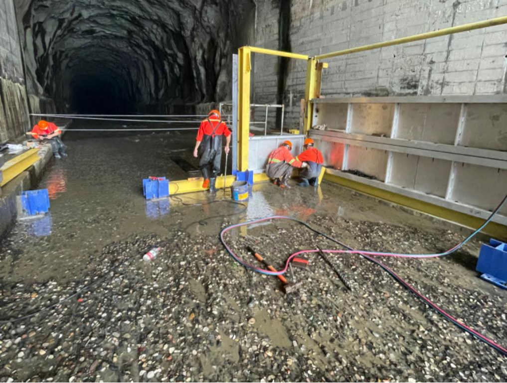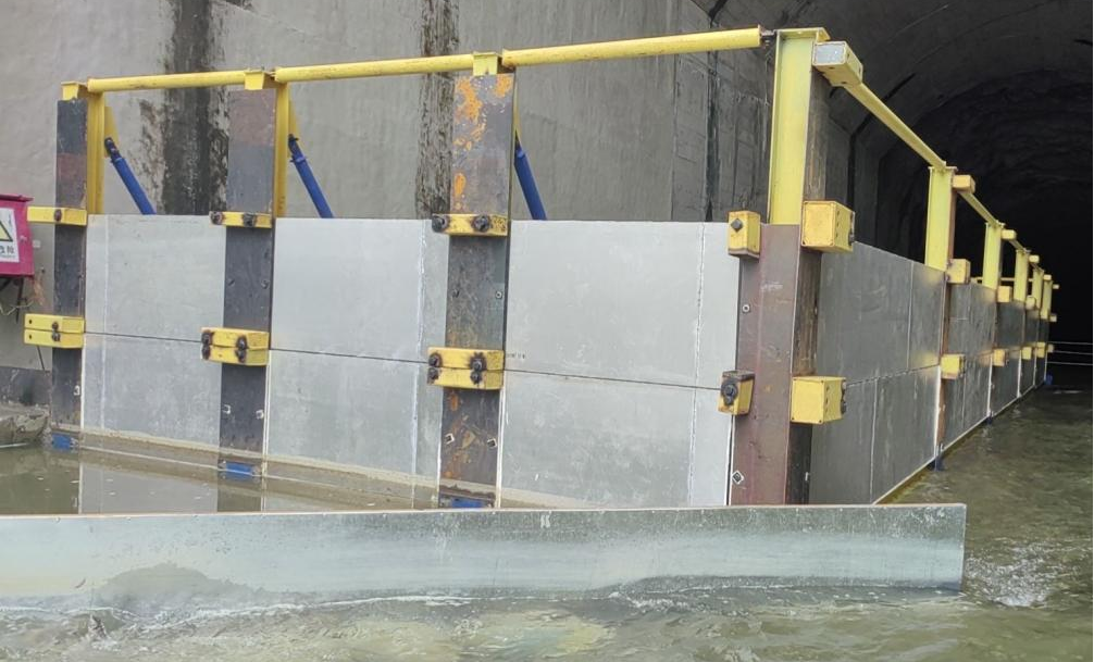 本項目重點之一是可快速轉(zhuǎn)運的拼裝式圍堰,結(jié)合密封材料,能快速形成一個隔水空間。利用拼裝圍堰安裝便捷性,對隧洞進行分塊修復(fù),達到在不斷流、確保隧洞過水安全的情況下,對隧洞進行全覆蓋修復(fù)。
